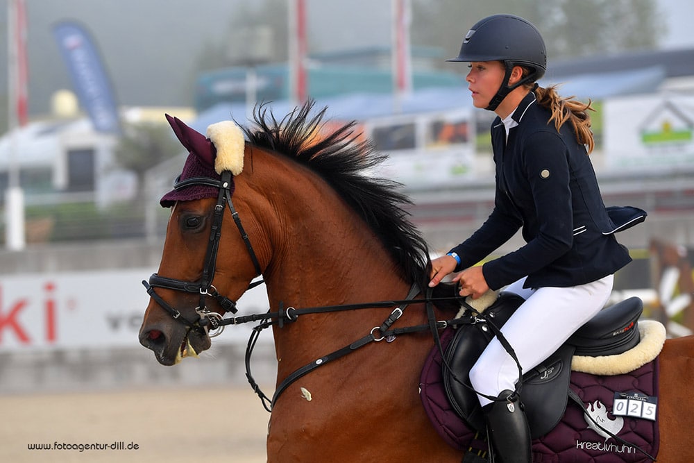 Mit Kaminka habe ich ein weiteres erfolgreiches Pferd in meinem Stall – gemeinsam haben wir 2024 die Burgenländische Landesmeisterschaft Junioren gewonnen.